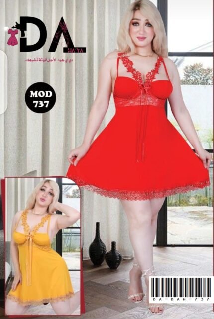 قميص نوم أنثوي بخامة قماش زبدة المعروف بنعومته ولمسته الخفيفة على البشرة. القماش مرن، بارد، ومريح للّبس اليومي. التصميم يجمع بين الرقة والفخامة بلمسات دانتيل ناعمة على الصدر والأطراف مع ربطة وسط تضيف جمال ودلع.