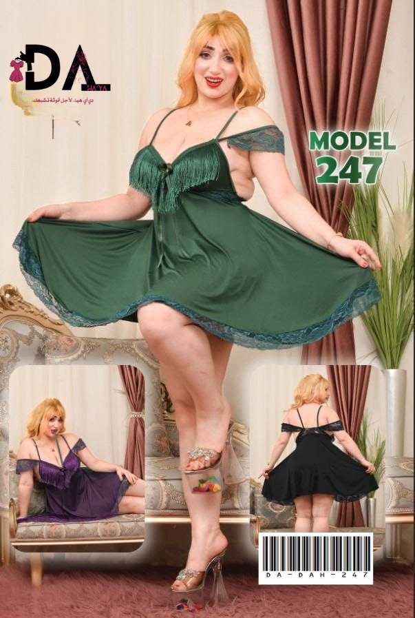 قميص نوم أنثوي بخامة قماش زبدة المعروف بنعومته ولمسته الخفيفة على البشرة. القماش مرن، بارد، ومريح للّبس اليومي. التصميم يجمع بين الرقة والفخامة بلمسات دانتيل ناعمة على الصدر والأطراف مع ربطة وسط تضيف جمال ودلع.