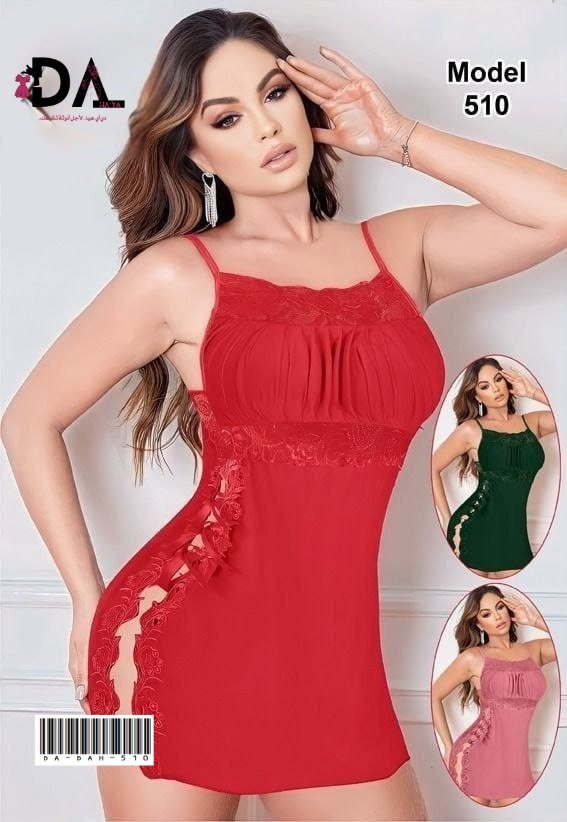 قميص نوم أنثوي بخامة قماش زبدة المعروف بنعومته ولمسته الخفيفة على البشرة. القماش مرن، بارد، ومريح للّبس اليومي. التصميم يجمع بين الرقة والفخامة بلمسات دانتيل ناعمة على الصدر والأطراف مع ربطة وسط تضيف جمال ودلع.