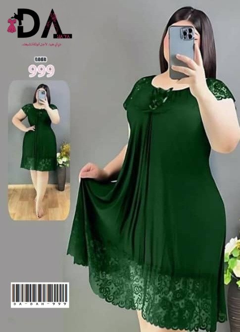 قميص نوم أنثوي بخامة قماش زبدة المعروف بنعومته ولمسته الخفيفة على البشرة. القماش مرن، بارد، ومريح للّبس اليومي. التصميم يجمع بين الرقة والفخامة بلمسات دانتيل ناعمة على الصدر والأطراف مع ربطة وسط تضيف جمال ودلع.